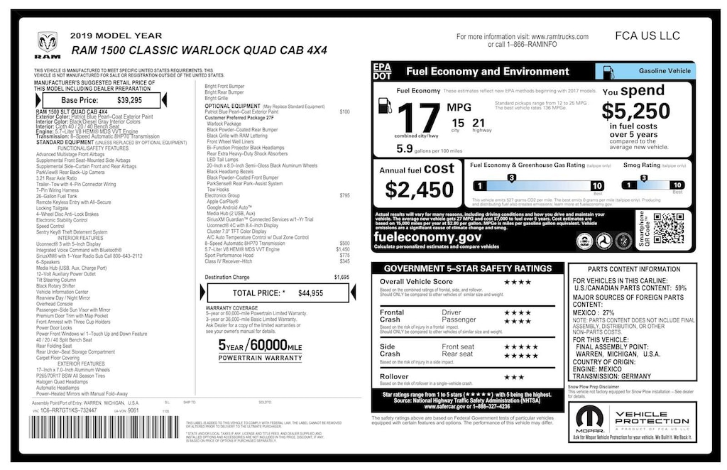 ENGINE: 5.7L V8 HEMI MDS VVT, Google Android Auto®, USB Host Flip, HD Radio, Media Hub (2 USB, AUX), 1-Yr SiriusXM Guardian Trial, Air Conditioning ATC w/Dual Zone Control, Humidity Sensor, 8.4 Touchscreen Display, Apple CarPlay®, TRANSMISSION: 8-SPEED AUTOMATIC (8HP70) (DFD), CLASS IV RECEIVER HITCH, Engine: 5.7L V8 HEMI MDS VVT, Transmission: 8-Speed Automatic (8HP70) (DFD), Black Powder Coated Rear Bumper, Black RAM Head Tailgate Badge, 4x4 Flat Black Badge, Black Headlamp Bezels, Semi-Gloss Black Hub, Bi-Function Halogen Projector Headlamps, Rear Extra HD Shock Absorbers, Sport Tail Lamps, Black Exterior Truck Badging, Black Powder Coated Front Bumper, Hood Decal, Black Grille w/RAM Lettering, Black Headlamp Filler Panel, Front LED Fog Lamps, Tow Hooks, Front Wheel Well Liners, 4x4 Decal, ParkSense Rear Park Assist System, Dual Rear Exhaust w/Bright Tips, Black Wheel Flares.